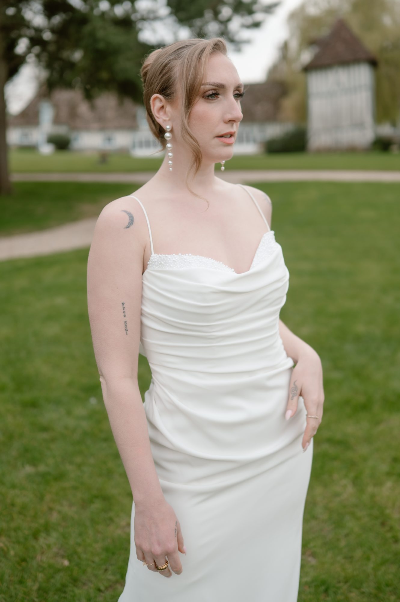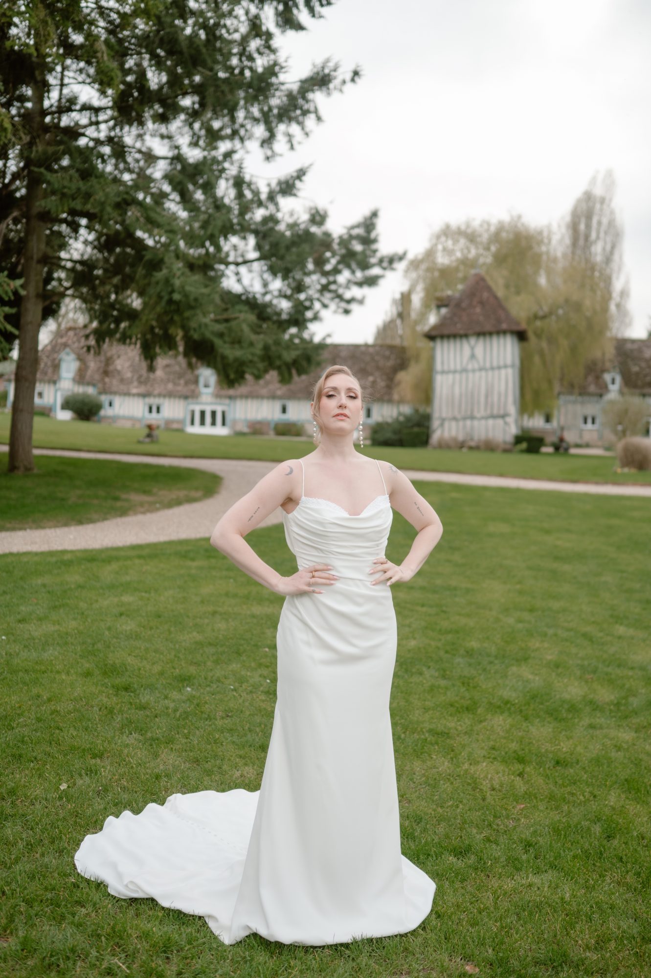 Ce projet a également été l’occasion de collaborer avec des prestataires talentueux du secteur du mariage. La mise en beauté a été réalisée par Elodie (@hairroom_by_elo), dont le travail de coiffure allie finesse et modernité. Le maquillage, signé Marvin (@makeur_by_marvin), a parfaitement mis en valeur la mariée avec élégance et naturel. Derrière l’objectif, la photographe Anne Letournel (@anneletournel_photography) a su capturer chaque instant avec sensibilité, révélant toute la poésie du lieu et des silhouettes.